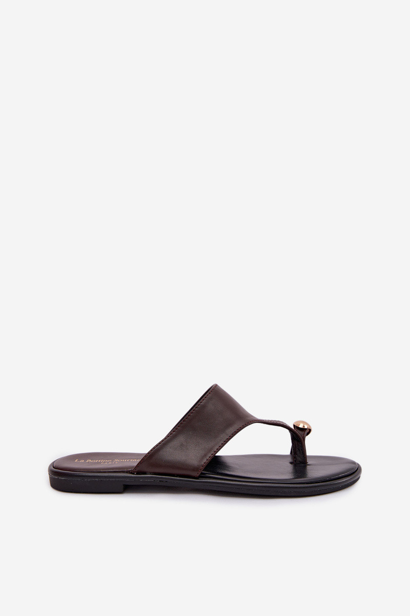 Dames platte slippers van kunstleer met gouden details in chocoladekleur Lavessa