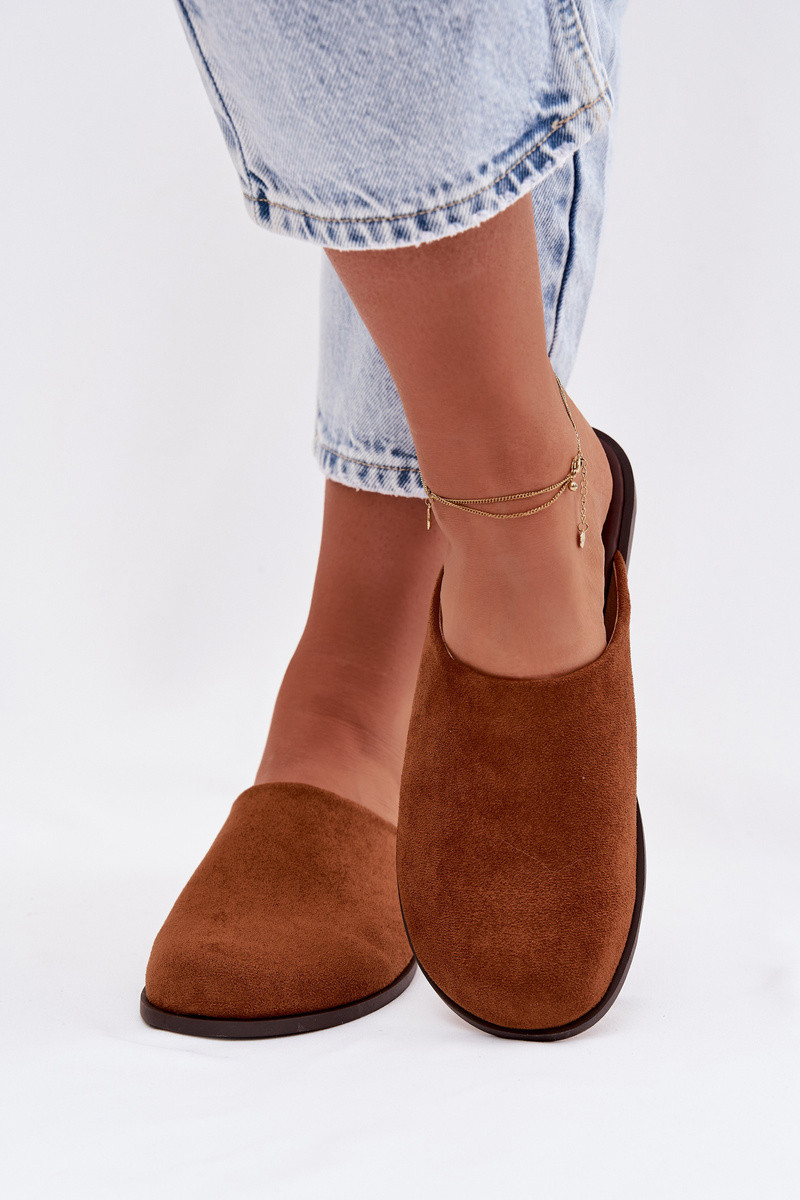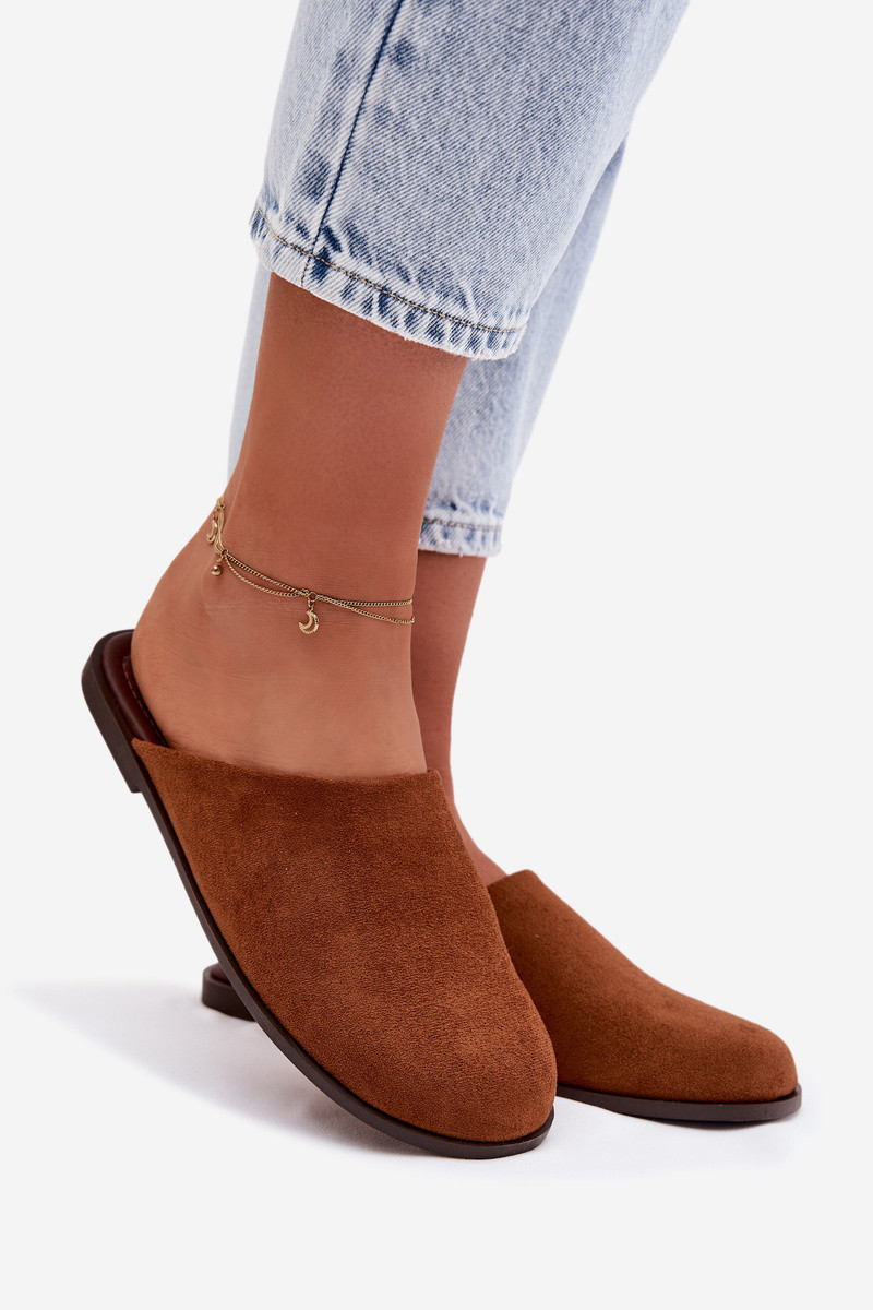 Slippers Dames platvan eco-suèdeu bruine kleur Veronelle