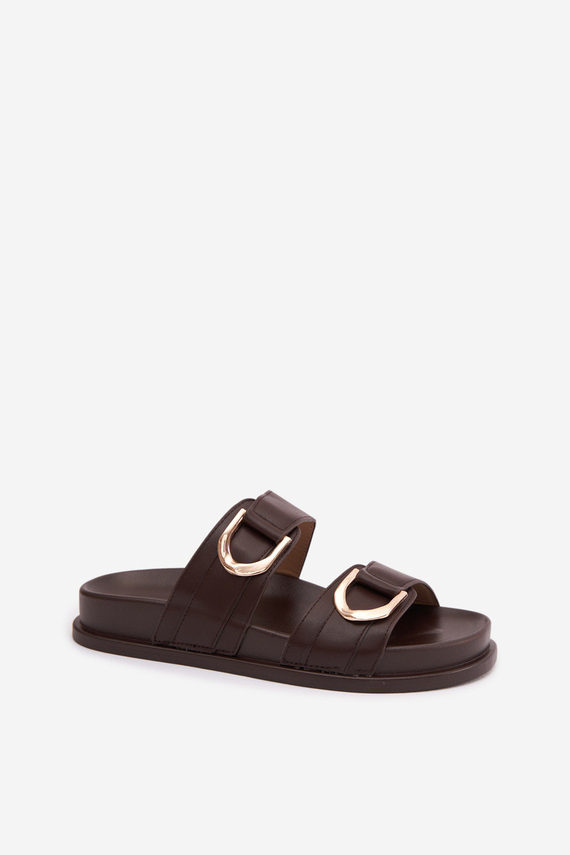 Dames kunstleren slippers met bandjes in chocoladebruin „Rosinessa"
