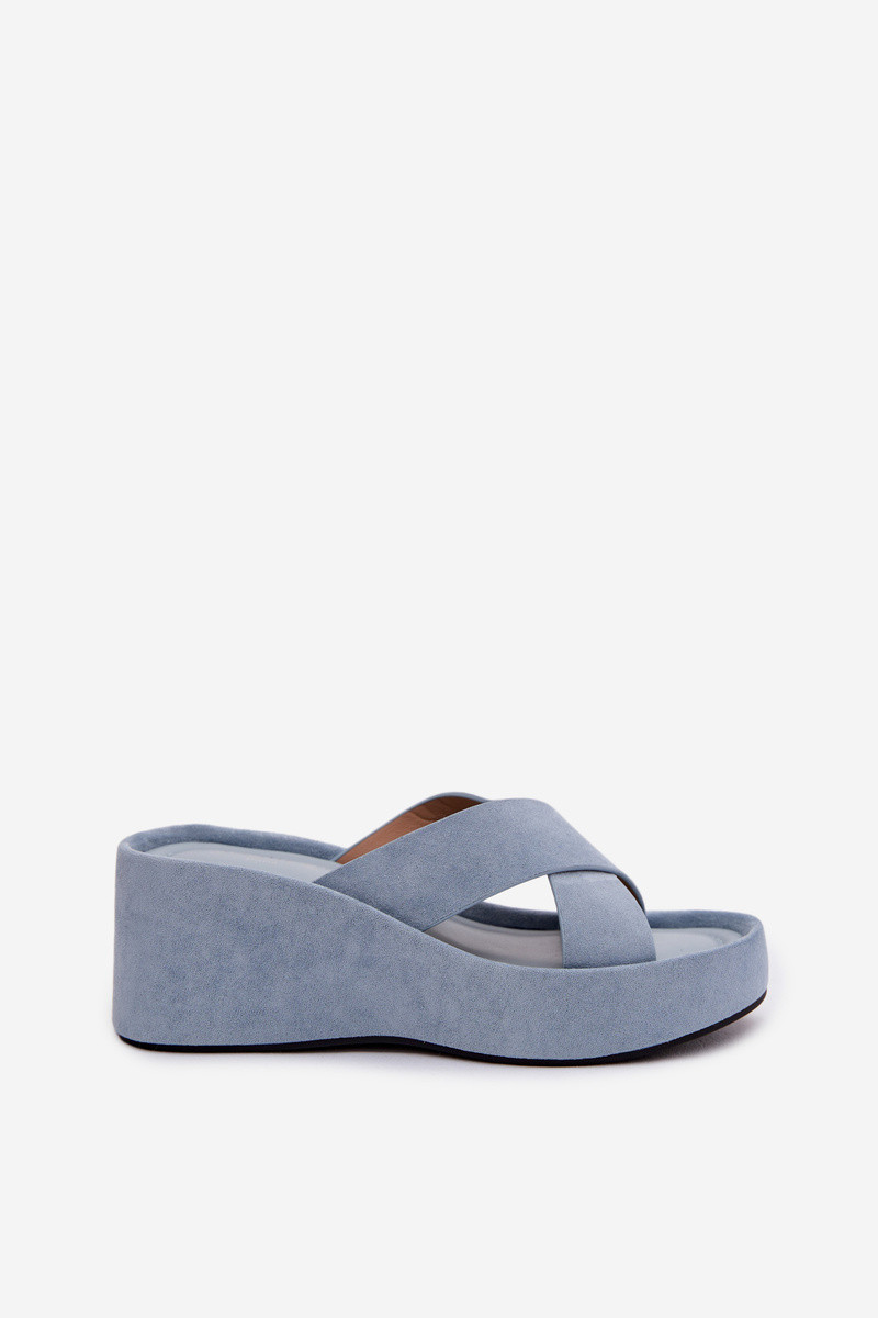 Dames slippers op platform van kunstsuède in blauwe kleur Calorine