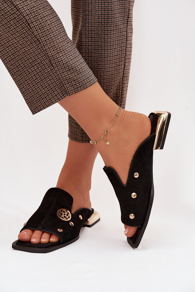 Suede pantoffels Ze gouden kleurmi Ozdobami D&A CR61-3061 zInart
