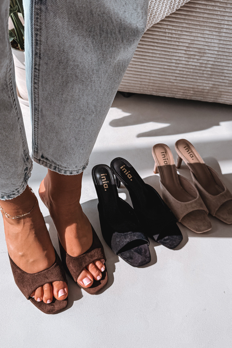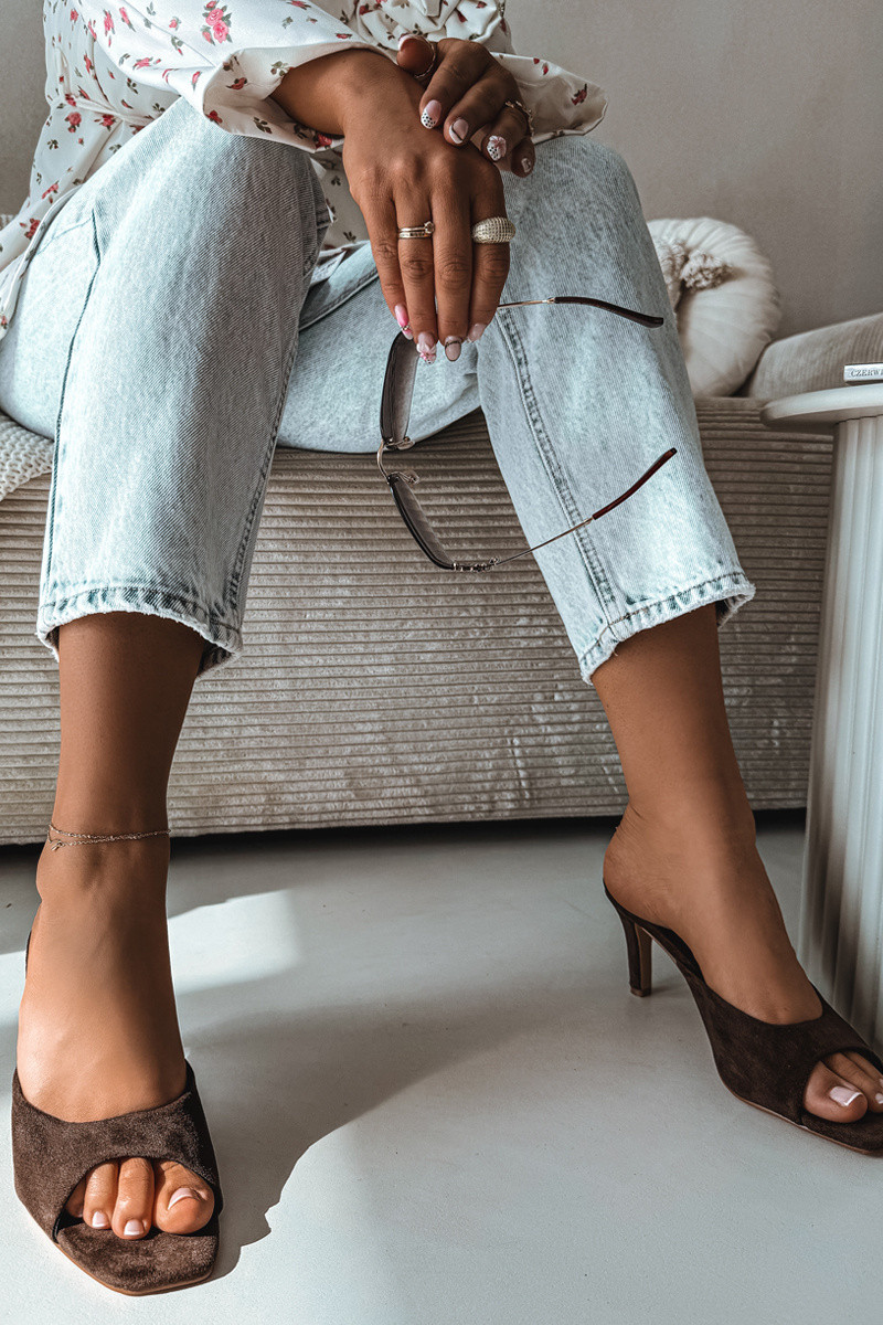 Dames slippers met dunne hak in chocolade kleur Revina