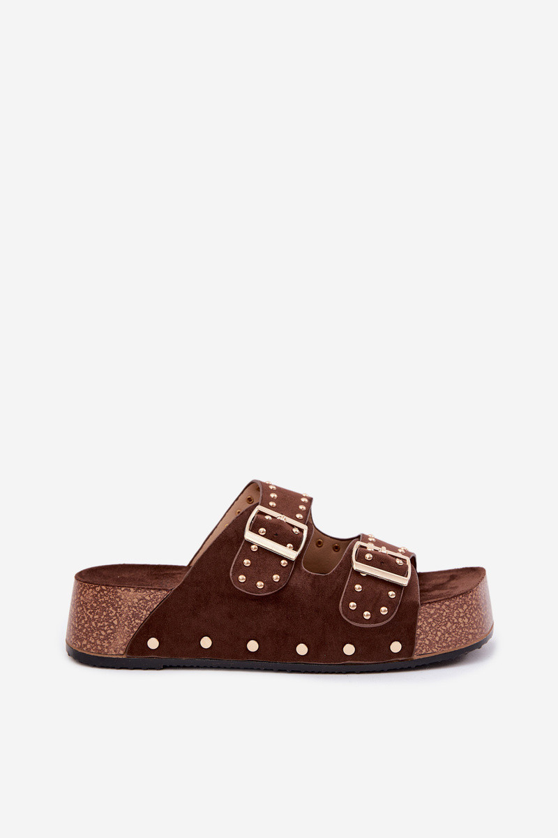 Damespantoffels met gespen En studs CzekoladoIne Ledira