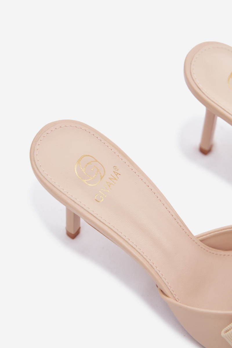 Dames slippers met dunne hakken en strikjes gele kleur Jelessa