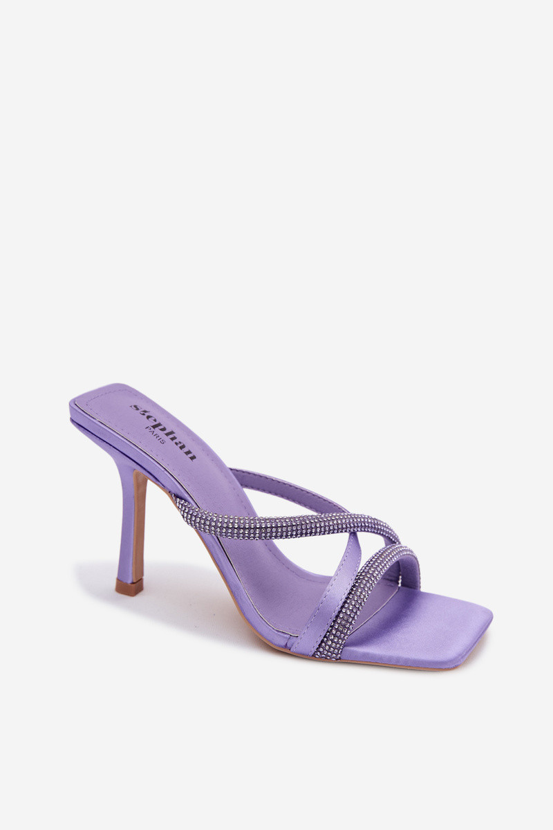 Dames roze slippers met dunne hakken en glinsterende steentjes Karima