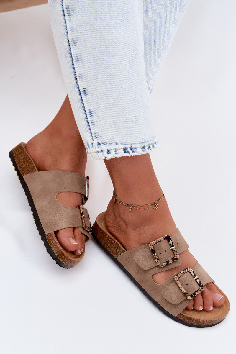Damespantoffels met gespen Lee Cooper LCIN-26-35-4451L kaki kleuren