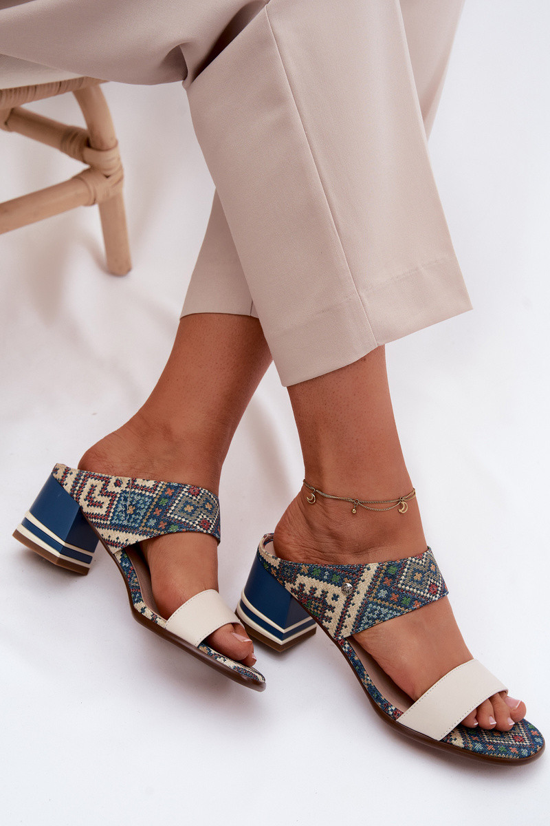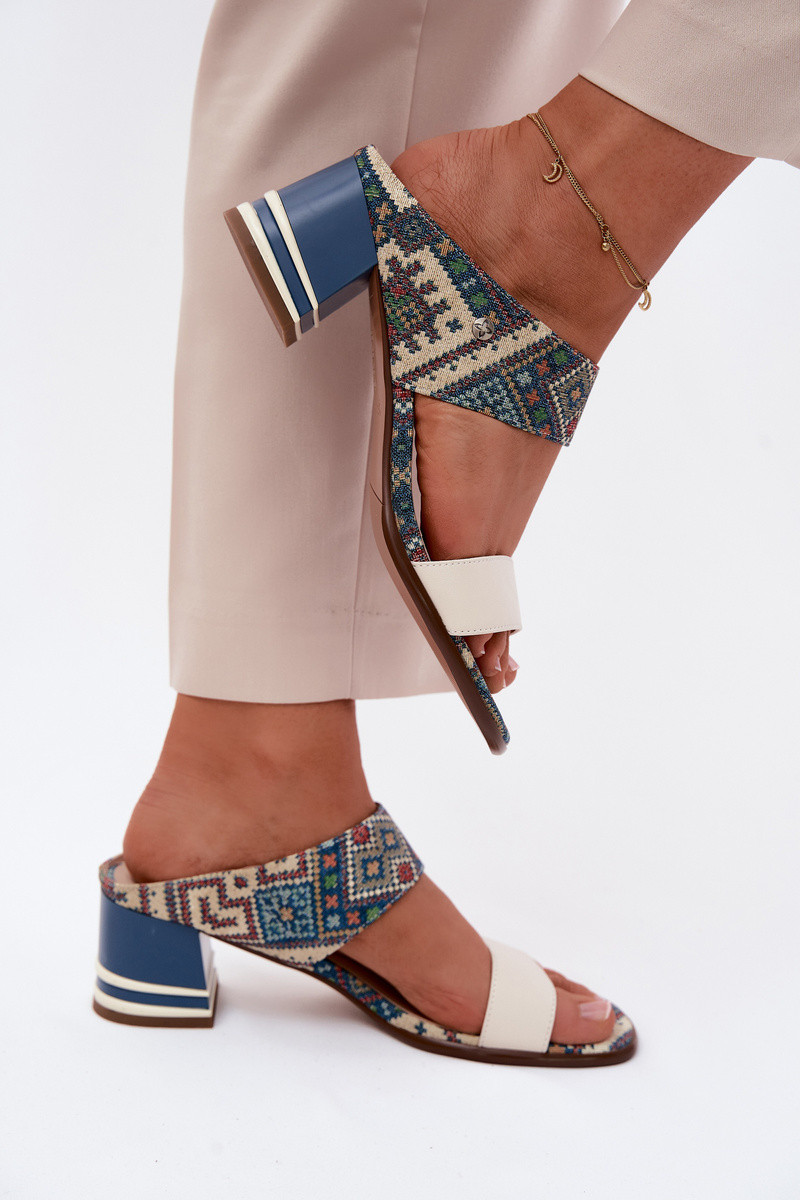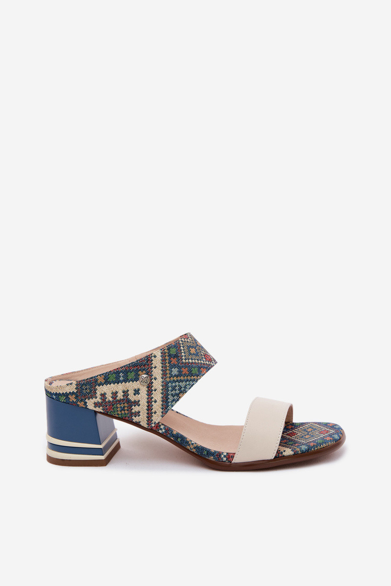 Leer Met patroon Damespantoffels met hakken Het heeftciejka K7522-04 beige-blauIn