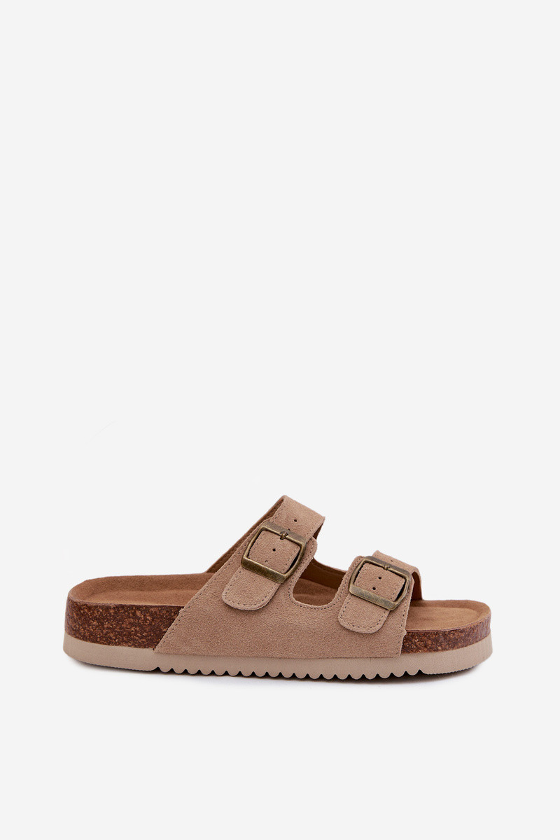 Leer Dames suède pantoffels met gespen beige Rosaliae