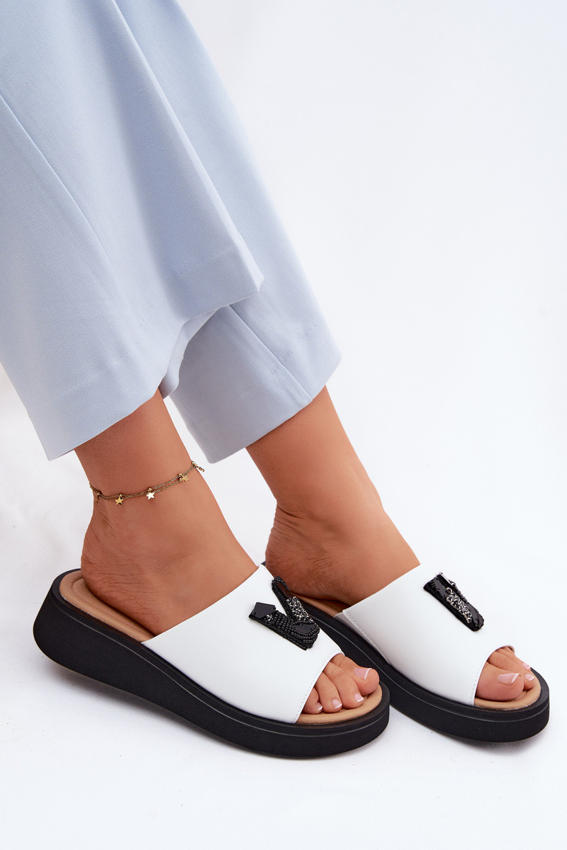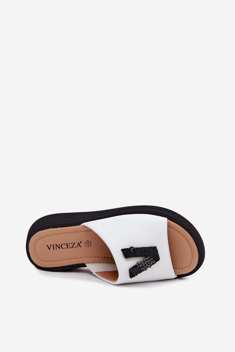 Leren dames slippers met V-vormige bovenkant op platform Vinceza 66950, witte kleur