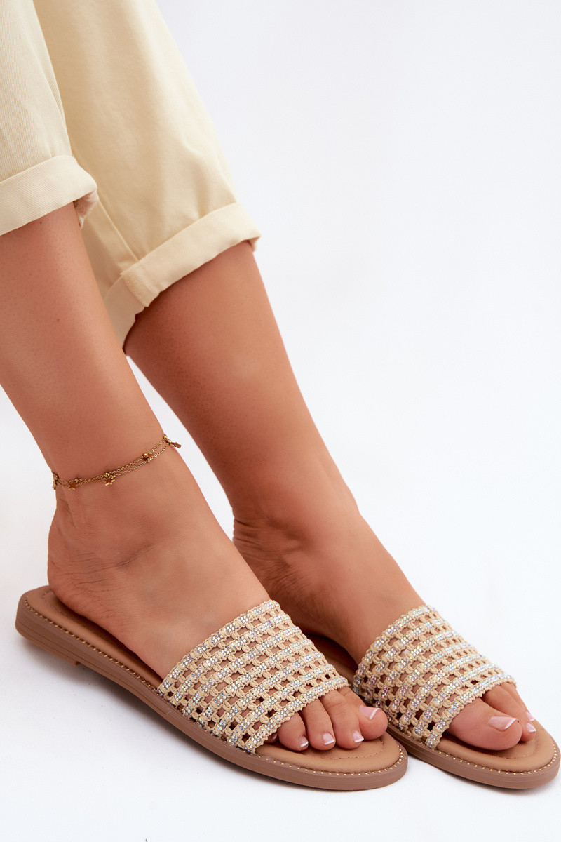 Slippers Dames plat met sprankelende gaten beige Fendi