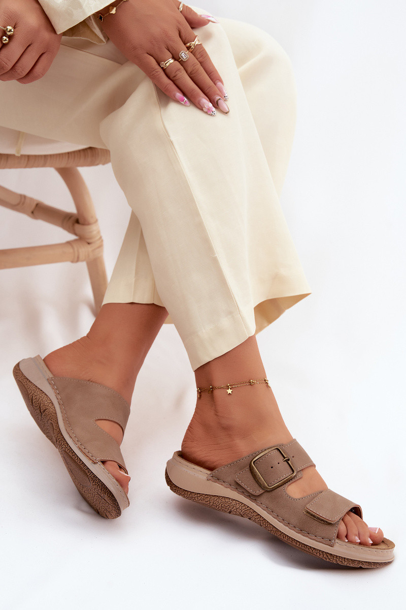 Dames slippers met gespen en plakkerige sluiting in bruin