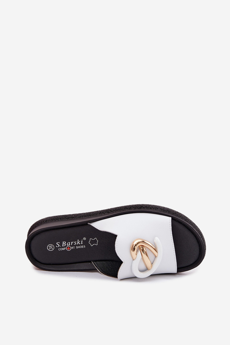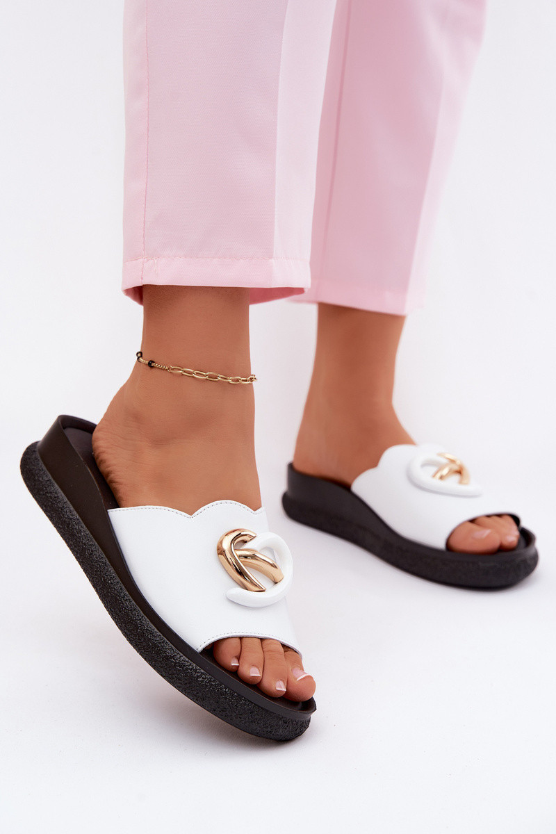 Leren slippers met decoratieve details in wit