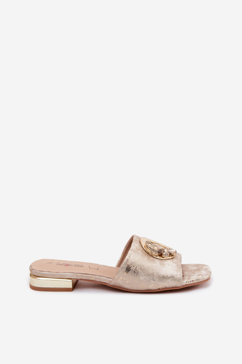 Dames slippers met brede hakken en ornamenten KV61-6025 gouden kleur
