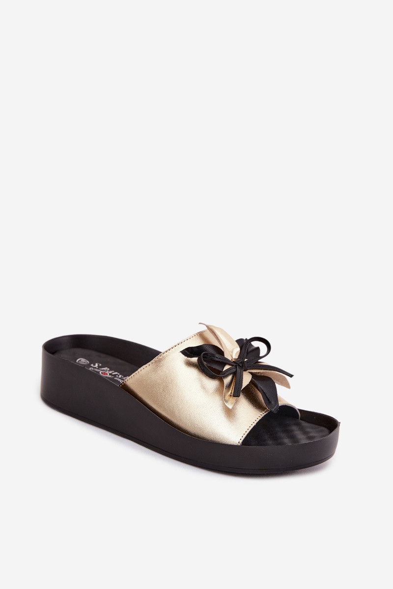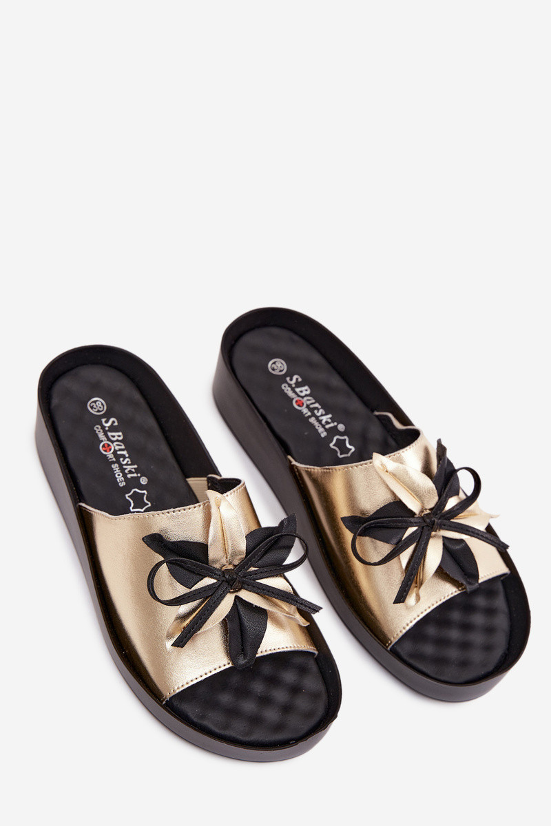 Leren slippers met ornamenten S.Barski KV61-6044 goudkleurig