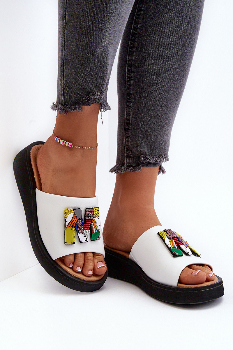 Leren slippers Dames met ornamenten zwarte kleur Asames