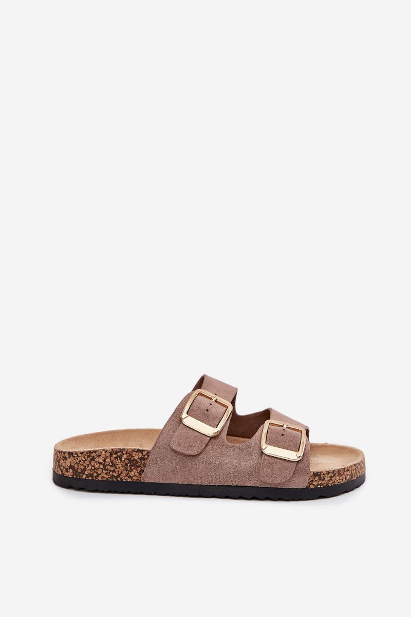 Dames zwarte faux suede slippers met gouden gespen Vorella