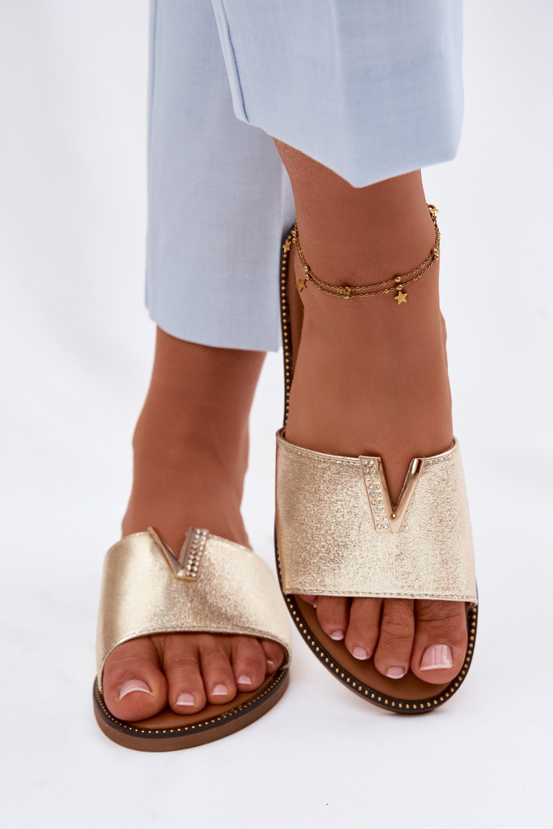 Slippers Dames plat Met sierlijk Detalem V gouden kleur Nelmira