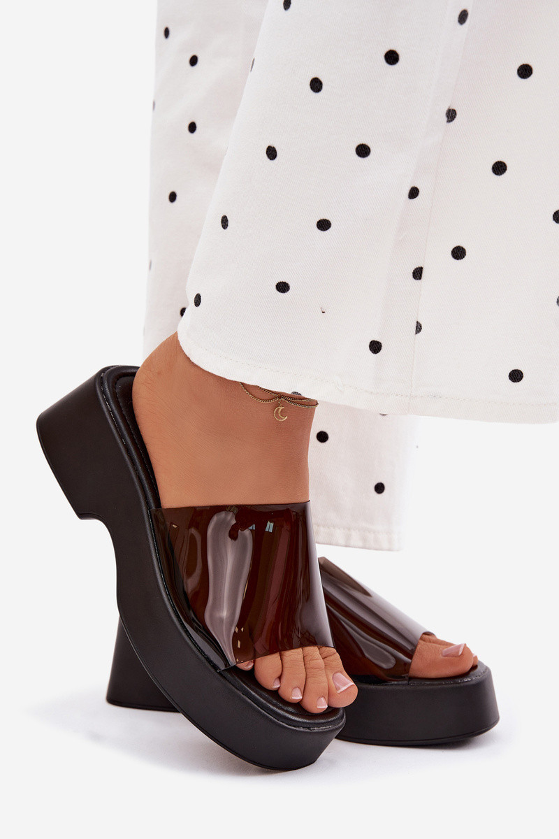 Dames zandkleurige platformslippers met doorzichtige banden Selestia