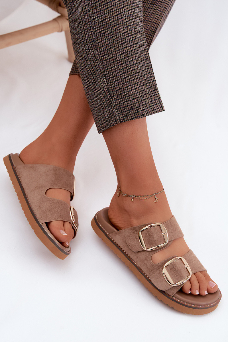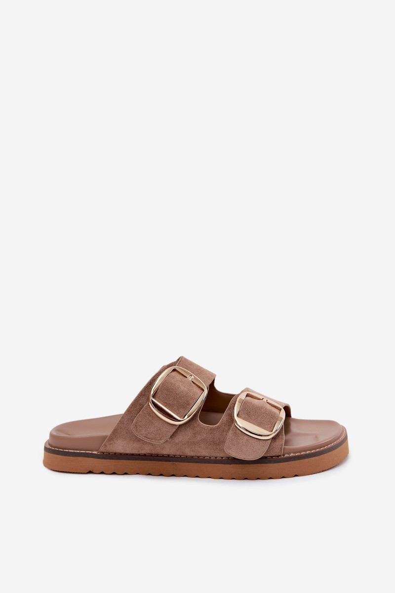 DamespantoffelsImitacji van suèdeu gouden kleur met gespen bruine kleur Averia