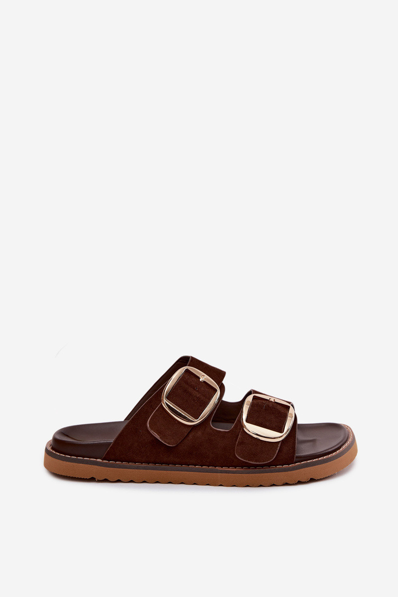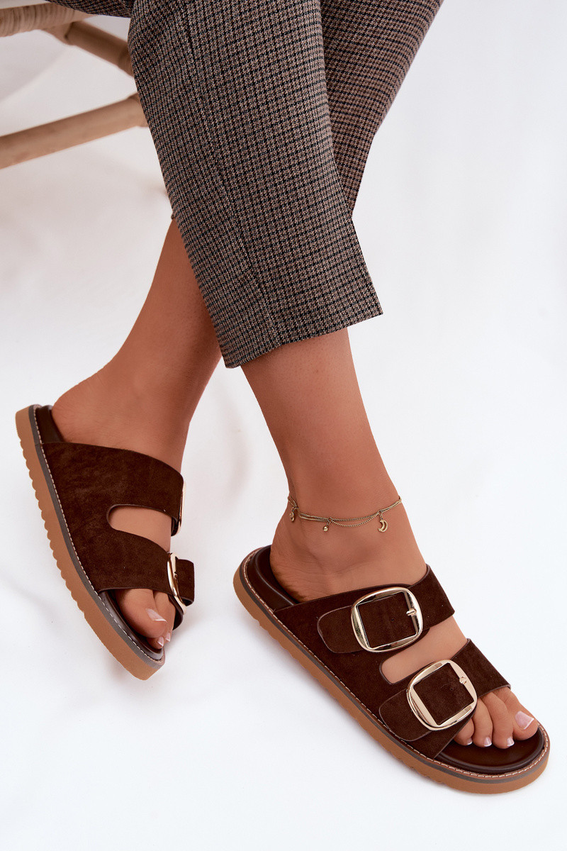 DamespantoffelsImitacji van suèdeu gouden kleur met gespen CzekoladoIne Averia