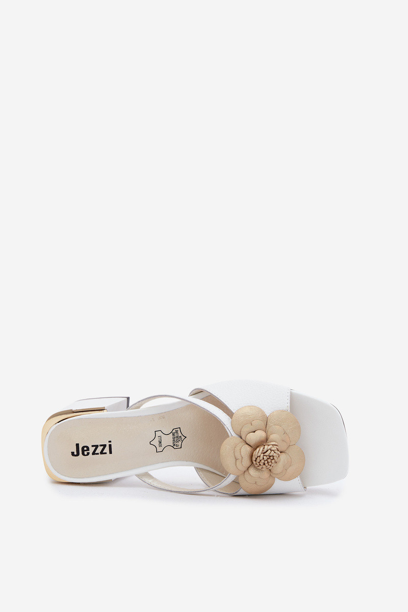 Leren slippers met bloem en hak in zandkleur Catva