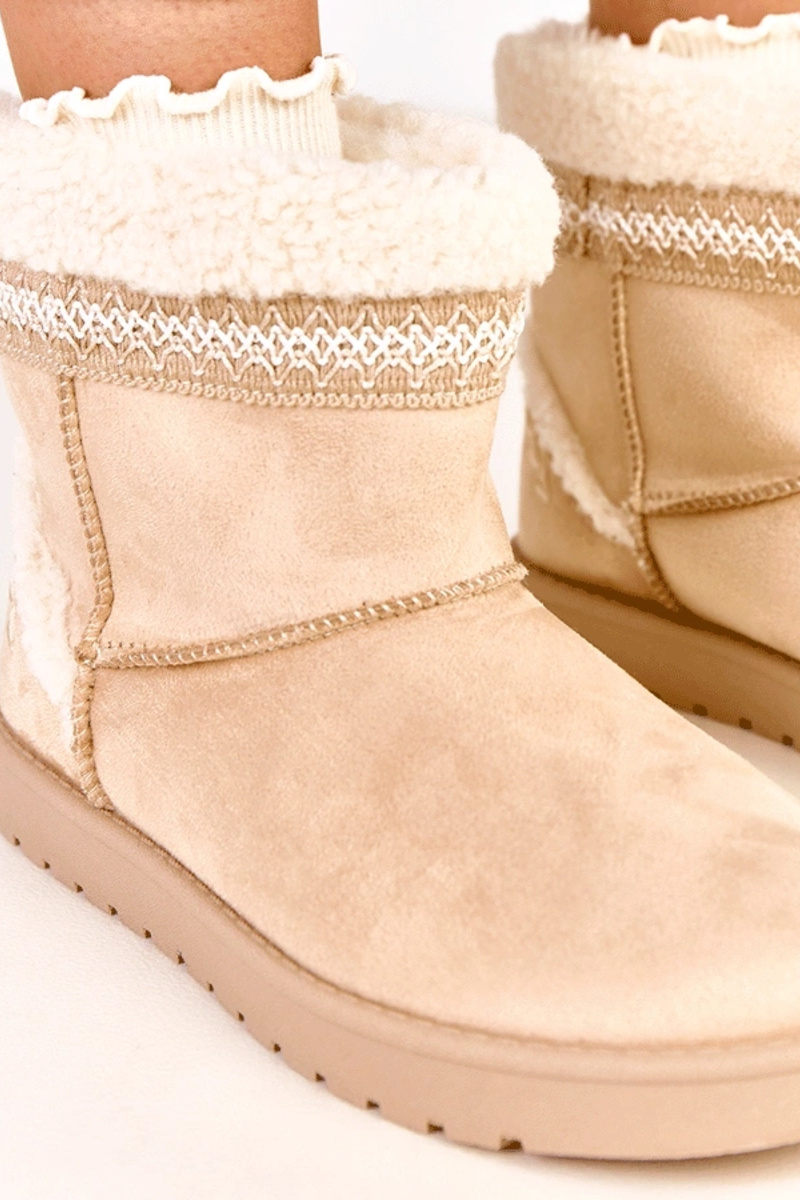Zandkleurige lage sneeuwlaarzen met borduurwerk, Sensila