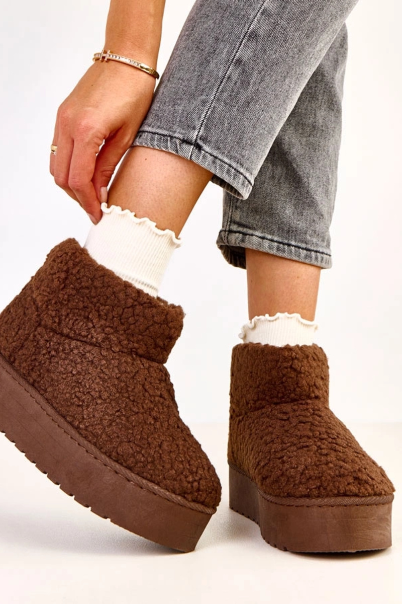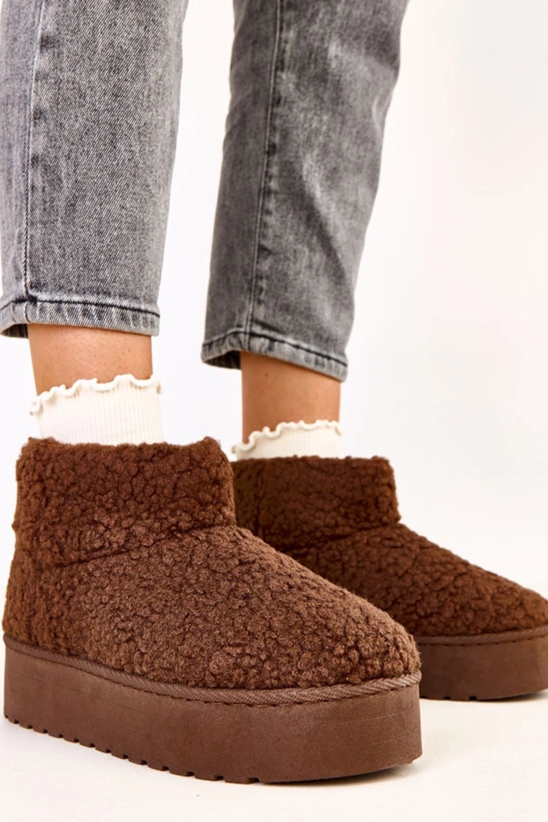 Donkerbruine sneeuwlaarzen met schapenvacht schacht Lasso