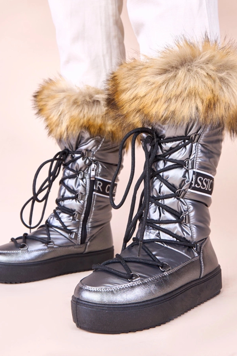 Metaalkleurige sneeuwlaarzen van het eskimo-type met bont Malida