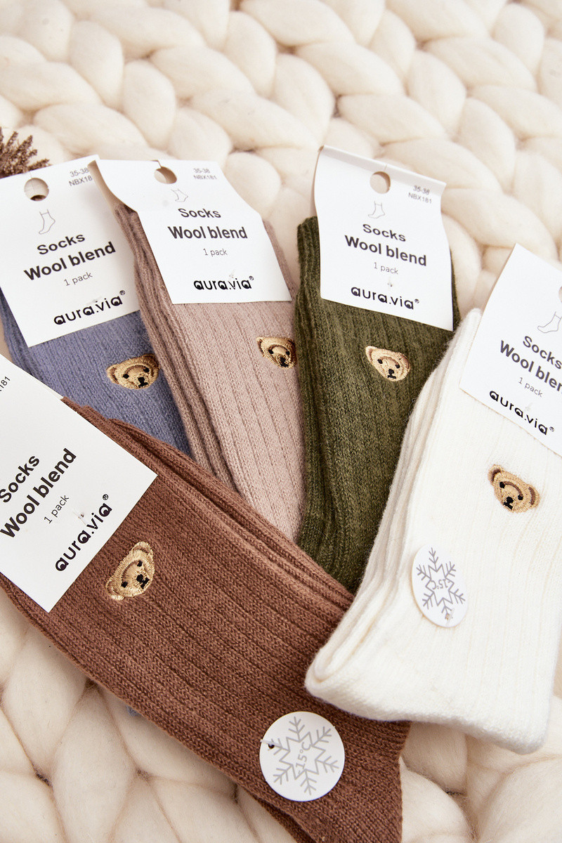 Dames dikke sokken met een berenmotief zandkleur