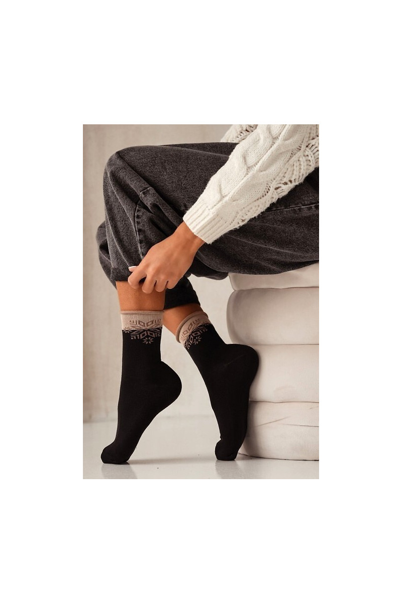 Dames sokken Christmas Półfrotte UNIQUE zonder druk Sterretje zwart