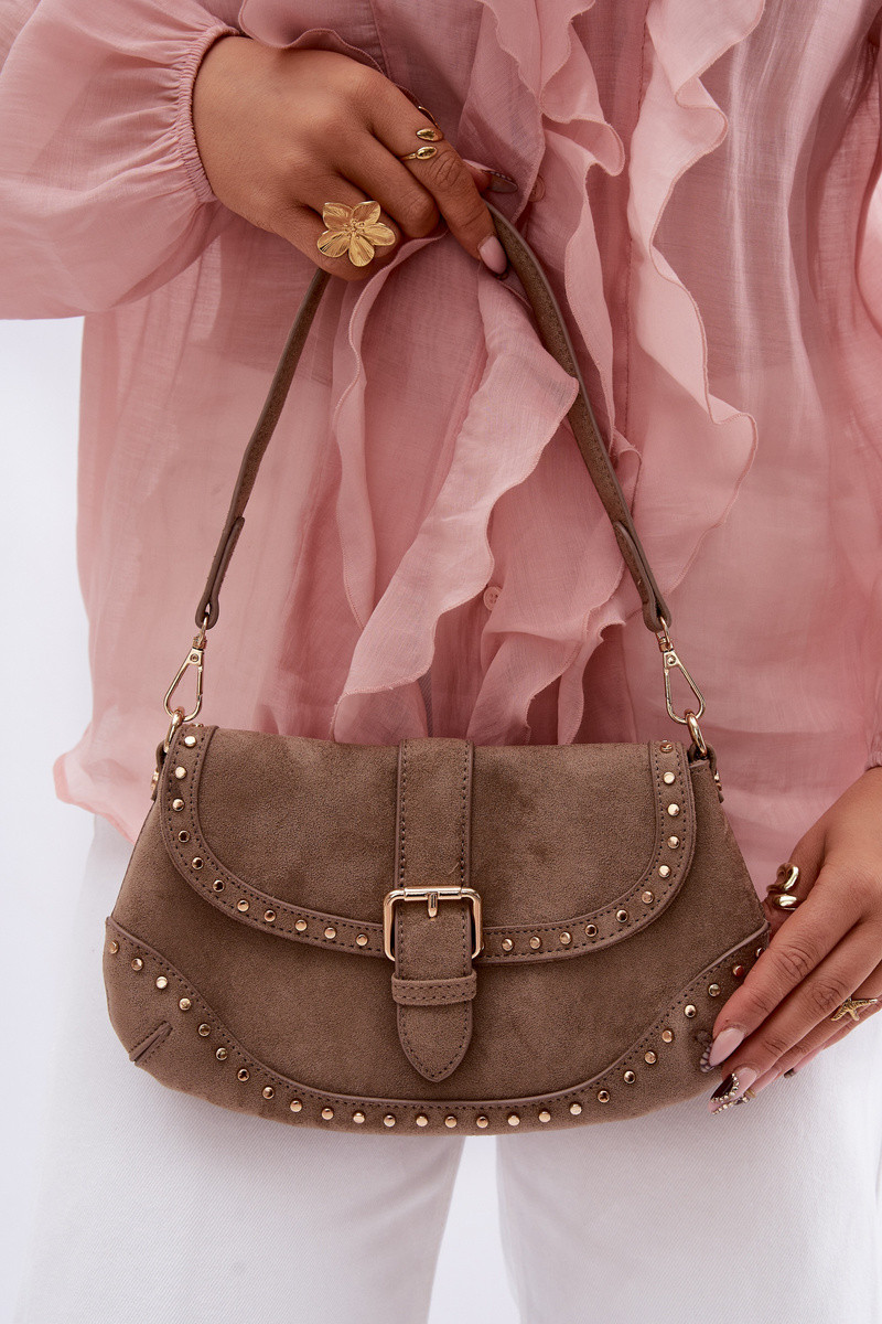 Tas met studs van kunstsuède in heldere zandkleur Clarielle
