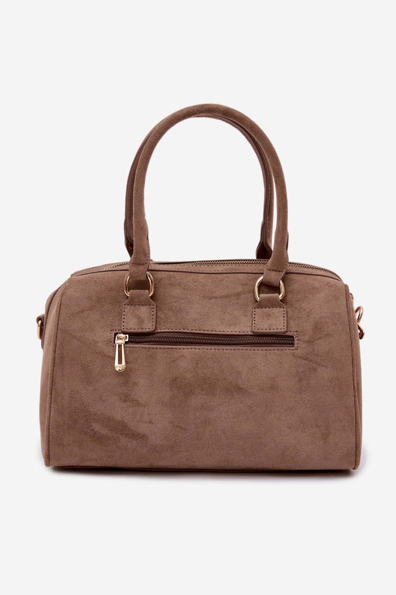 Kofferachtige tas met gouden studs in donker zandkleur Emelle