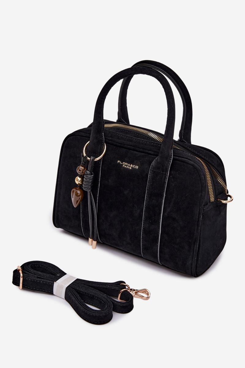 Kofferachtige tas van kunstsuède met sleutelhangers in zwarte kleur Sorielle