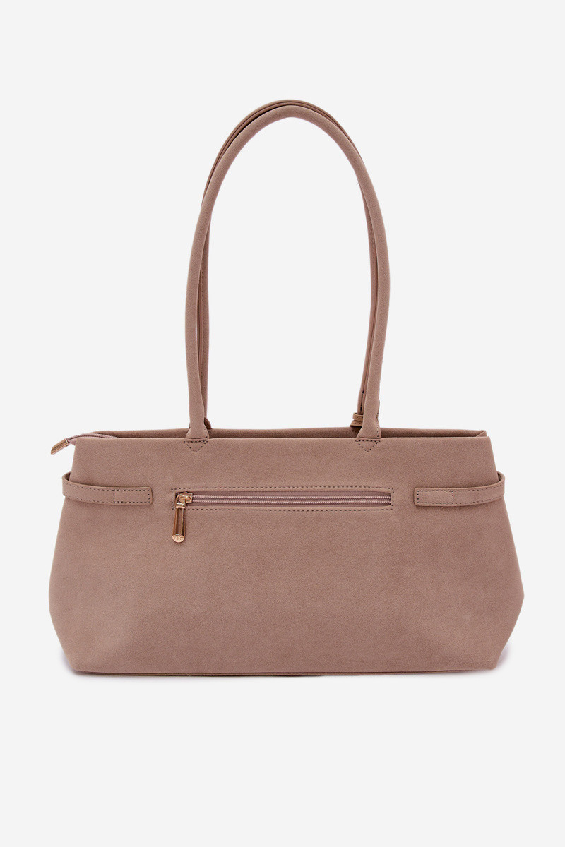 Tas met imitatie van kunstsuède met rits in donkerzand kleur Noellea