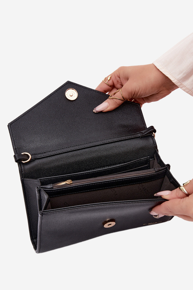 Tas in envelopstijl met twee vakken en decoratieve linten in zwart Pauline