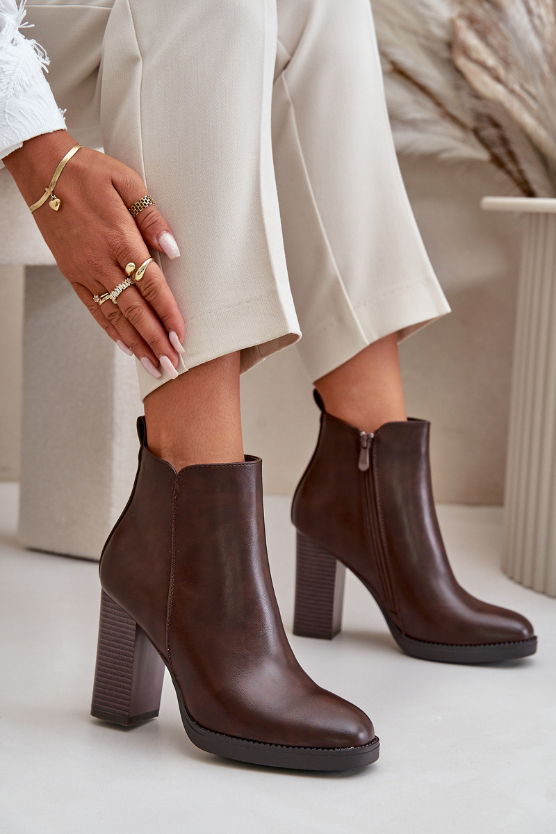 Gevoerde dameslaarzen van kunstleer donkerbruin kleur Teresine