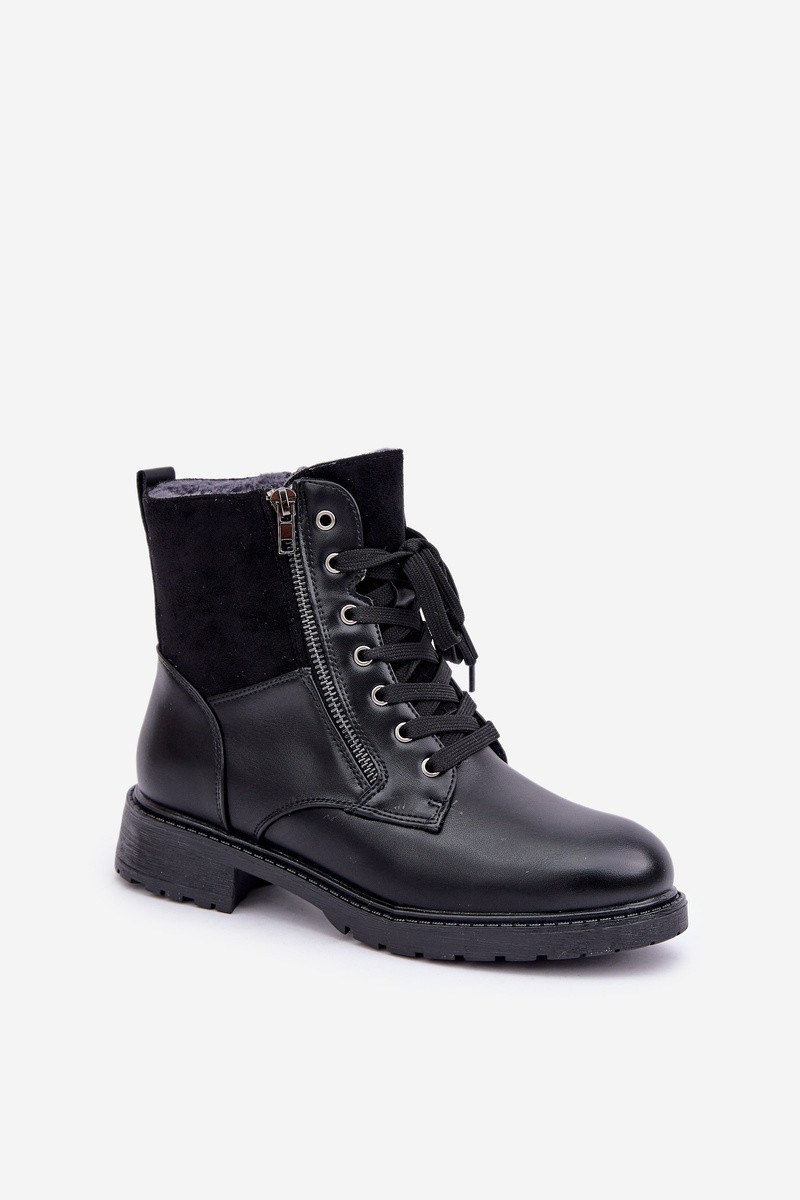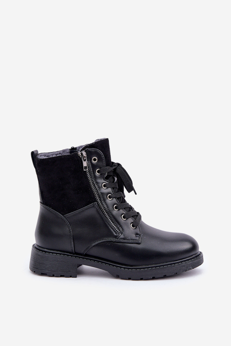 Gevoerde laarzen met brede hakken in zwart van kunstleer