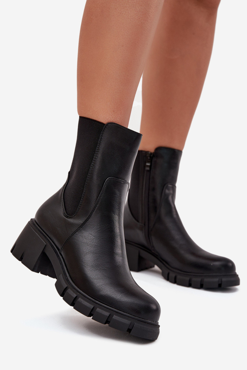 Dames enkellaarsjes van kunstleer, zwarte kleur Kyra