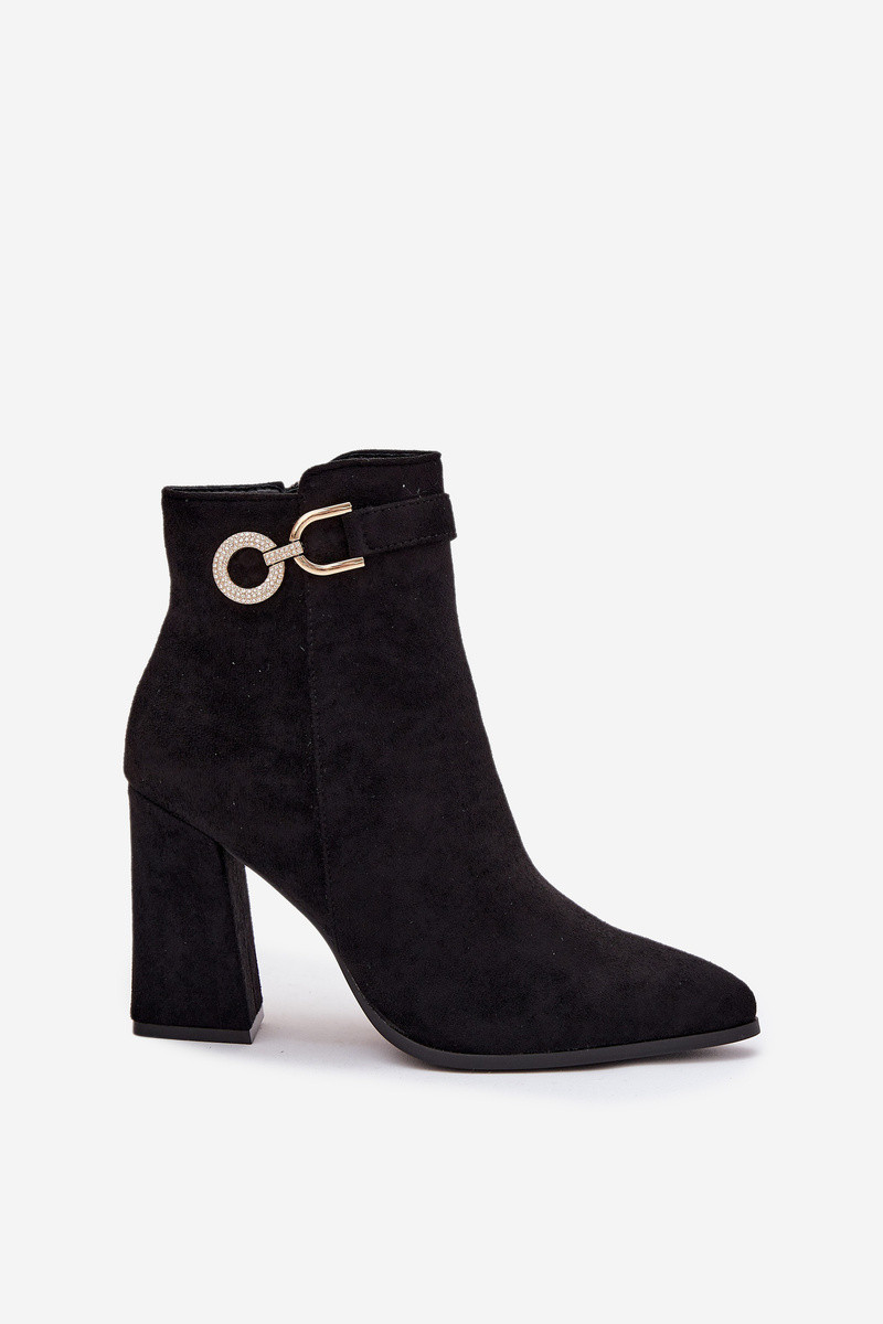 Zwarte kunstsuède enkellaarsjes met ornamenten op hak, Lymall