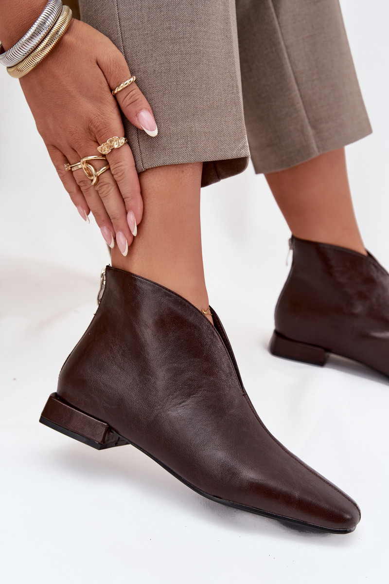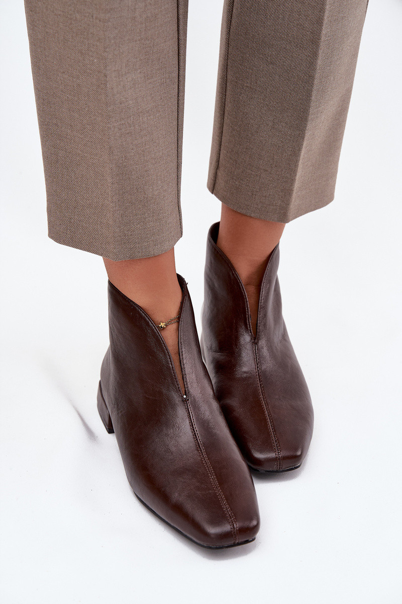 Chocolade kleur dames enkellaarsjes op dunne hak Elvienne