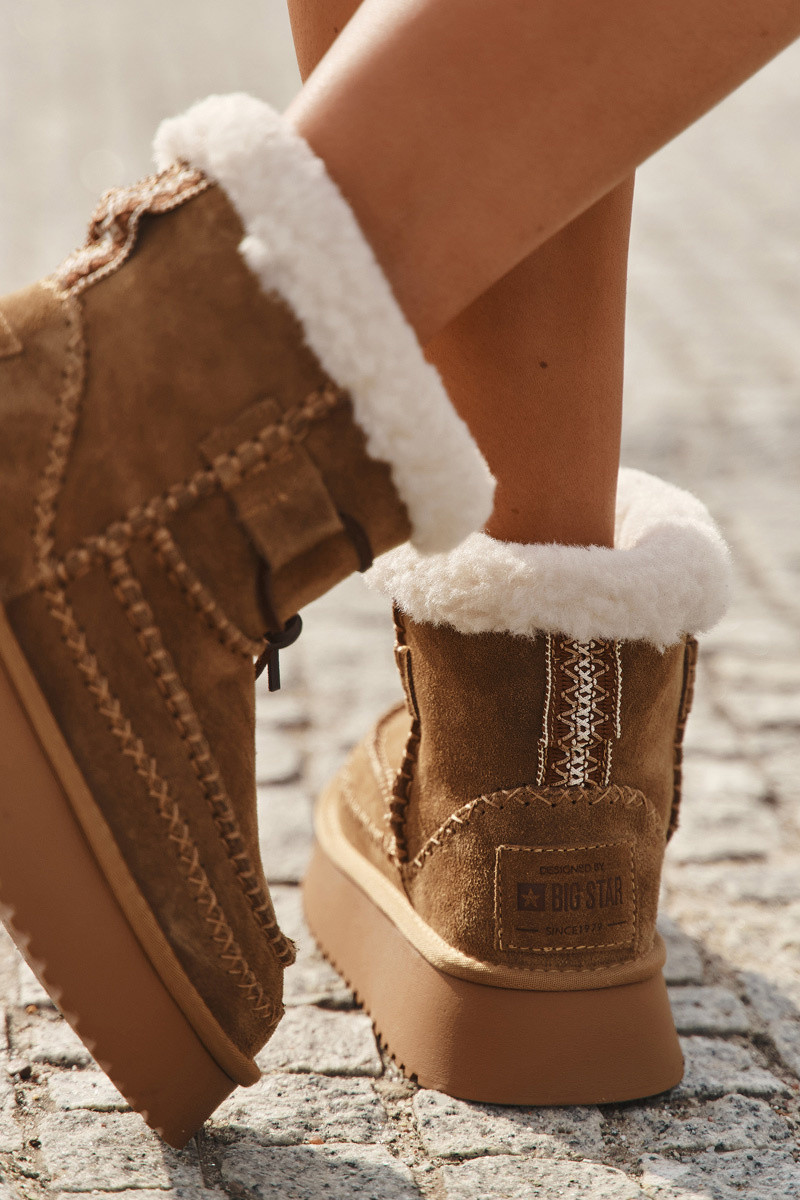 Suède sneeuwlaarzen dames met versierde stiksels, Big Star SS274373, bruine kleur