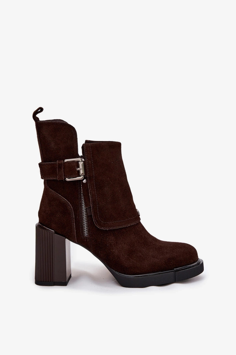 Leren laarzen van natuurlijk suède met hakken en gespen, Vinceza 91152, chocoladekleur