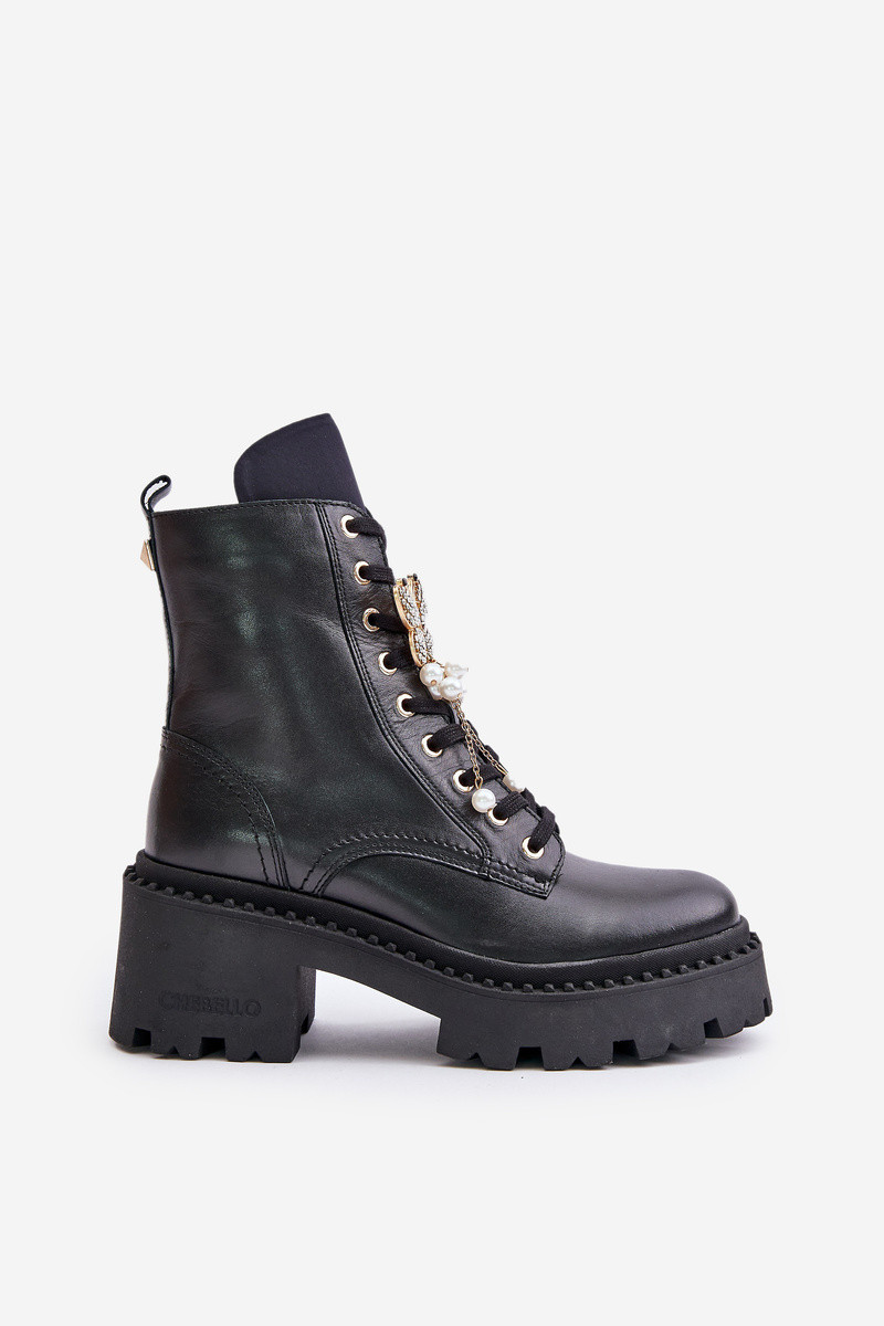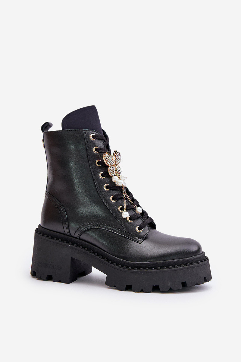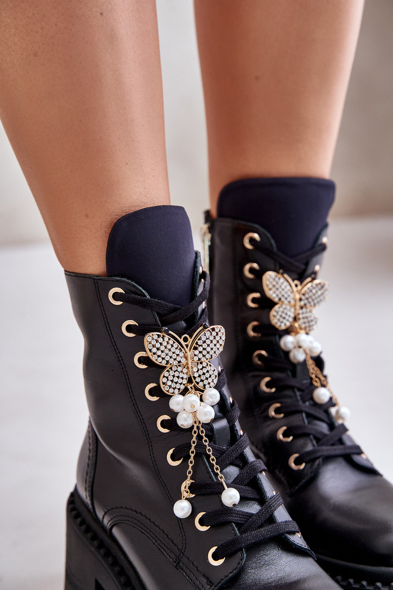 Zwarte leren dames werkankerschoenen met vlinders „CheBello 4590"