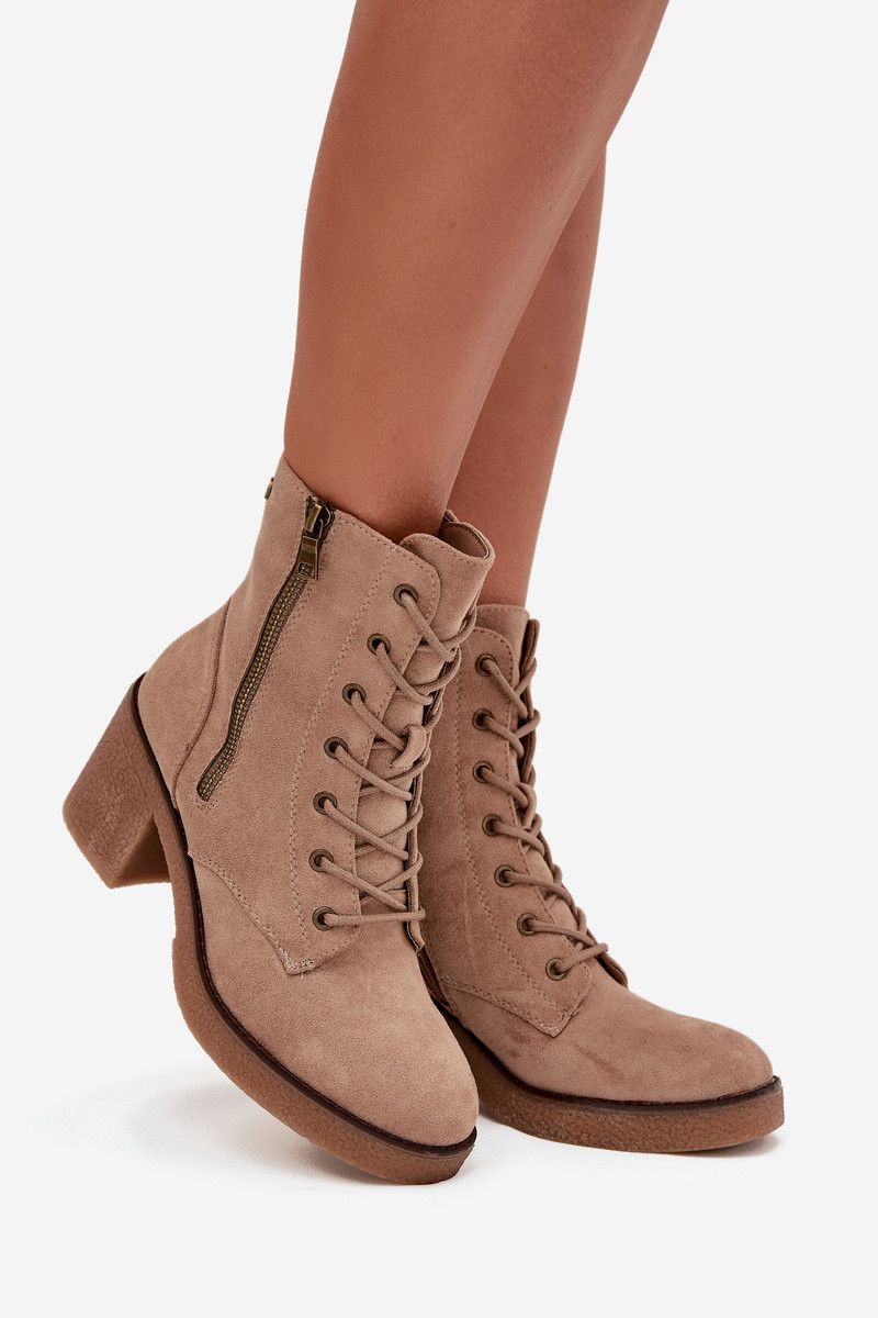 Gewatteerde dames zandkleurige enkellaarsjes met veters en ritsen Paressa
