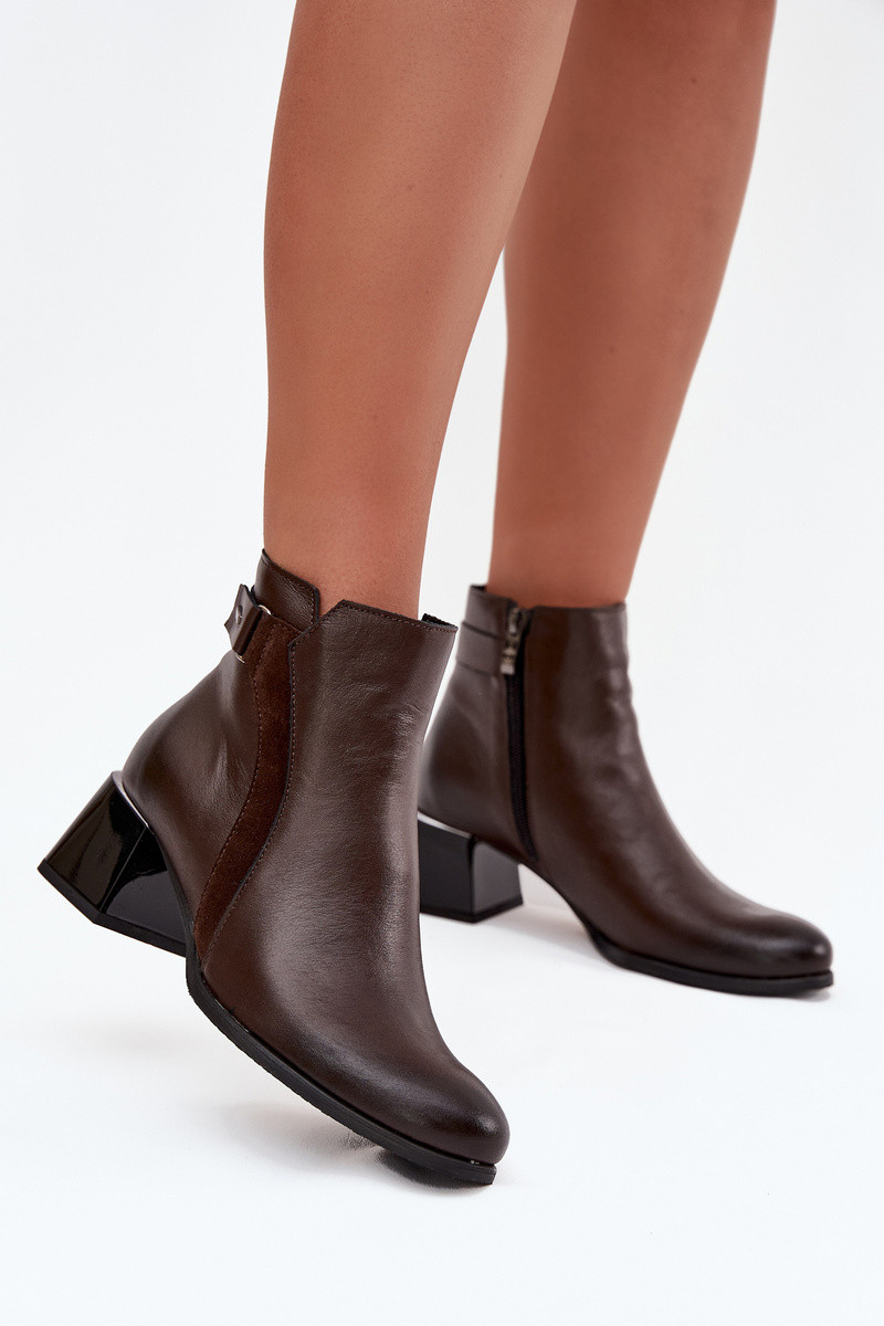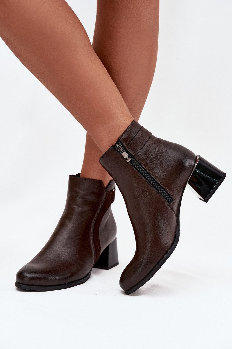 Chocolade leren warme damesankle boots met hakken Zazoo 60563