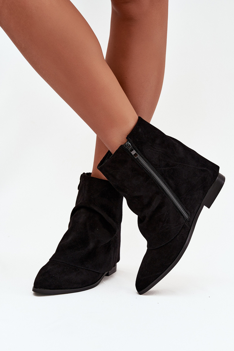 Zwarte warme ankle boots met verborgen veter van eco-suède Tavella