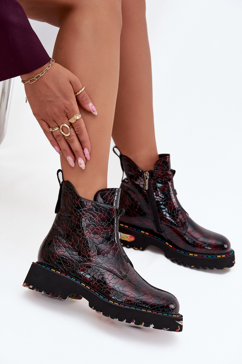 Gevoerde dames enkellaarsjes van natuurlijk leer met lak effect Artiker 57C0165 bordeaux kleur