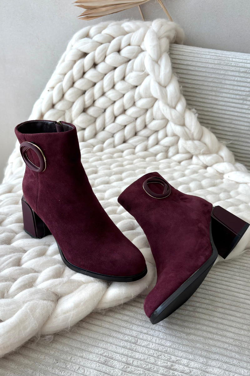 Suède warme laarzen met hak en decoratieve details Artiker 57C0016 bordeaux kleur