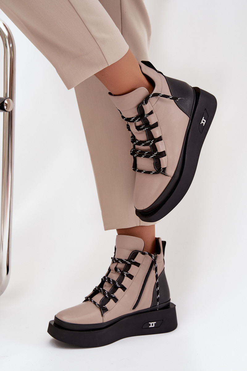 Leer Dameslaarzen met platform opInarmen Artiker 55C0884 beige
