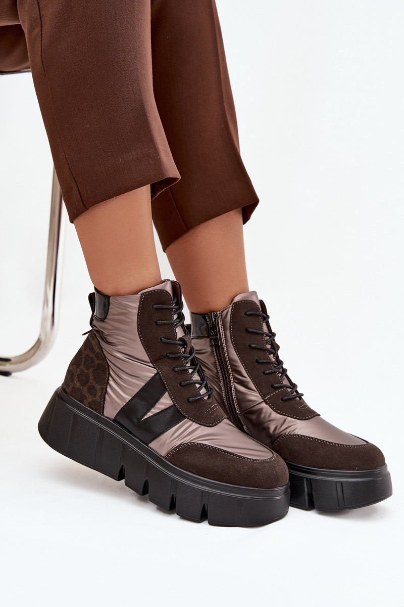 Dames warme enkellaarzen met platform Vinceza 58562 bruine kleur